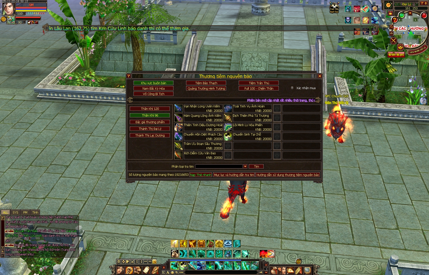 - Miễn phí điểm tặng & vàng KNB