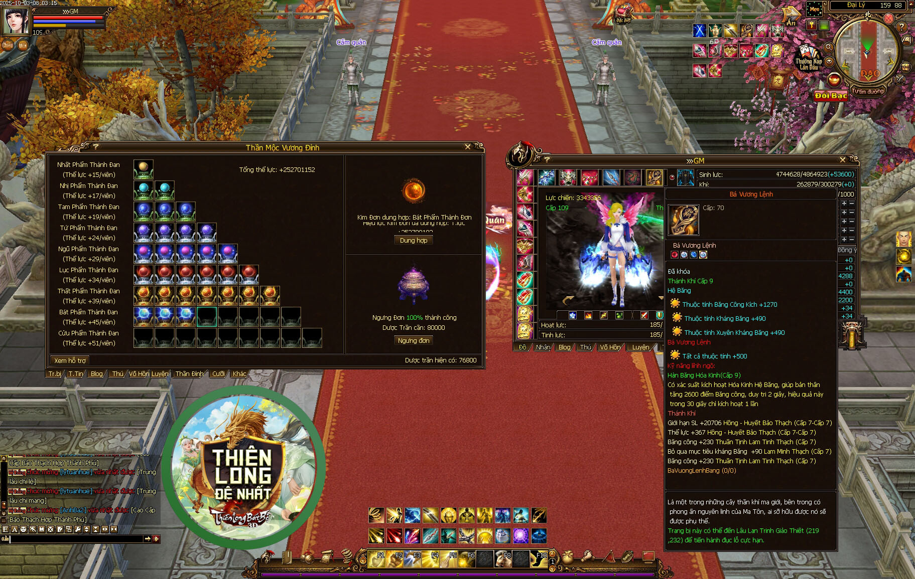 ► Phiêu miễu phong : Giọt Lệ Rồng + Thần binh phù cấp 3 , CLĐ + hàn băng tinh tiết , ngọc 6 , chú văn , long văn , phiếu ĐMP