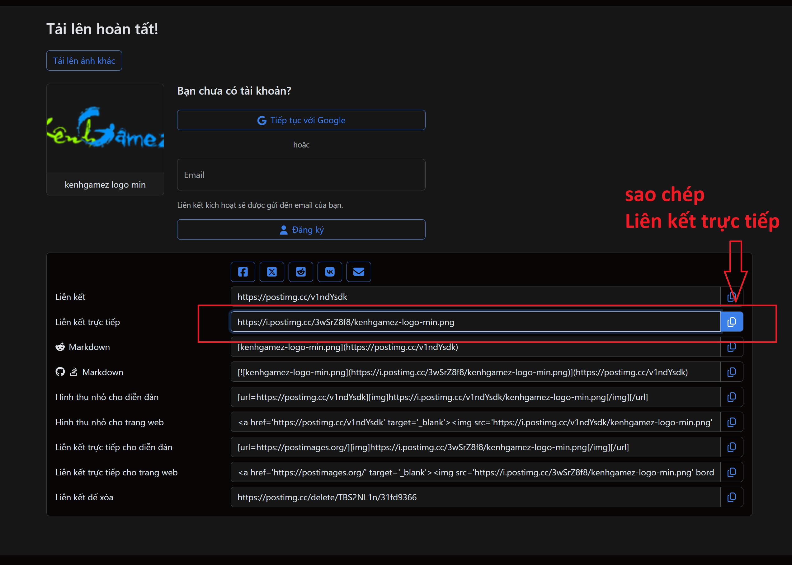 Bước 1: Chọn các website up ảnh bên trên và tải ảnh lên