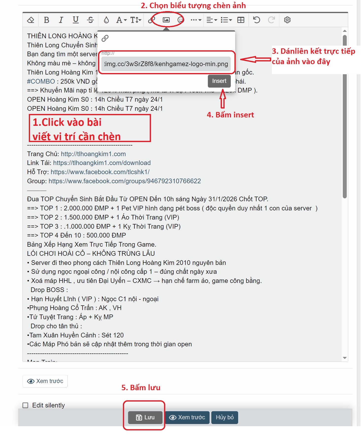 Bước 3: Quay lại bài viết của bạn tại kenhgamez và Chèn ảnh vào bài viết